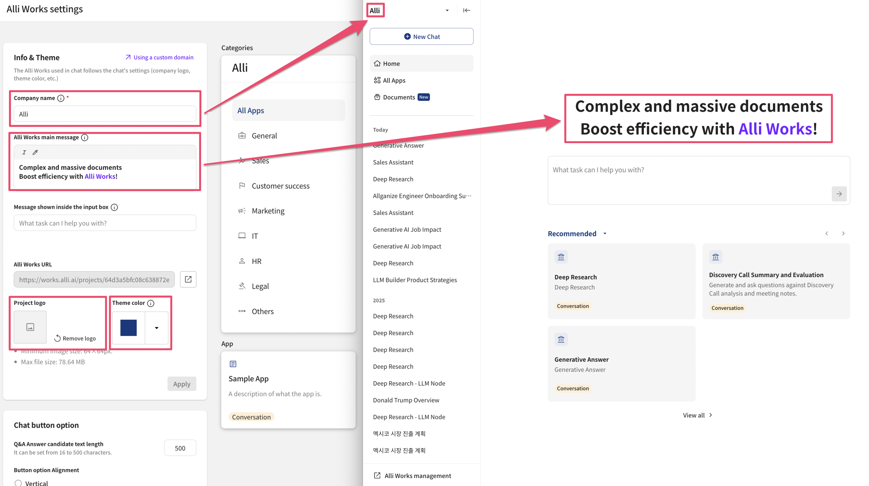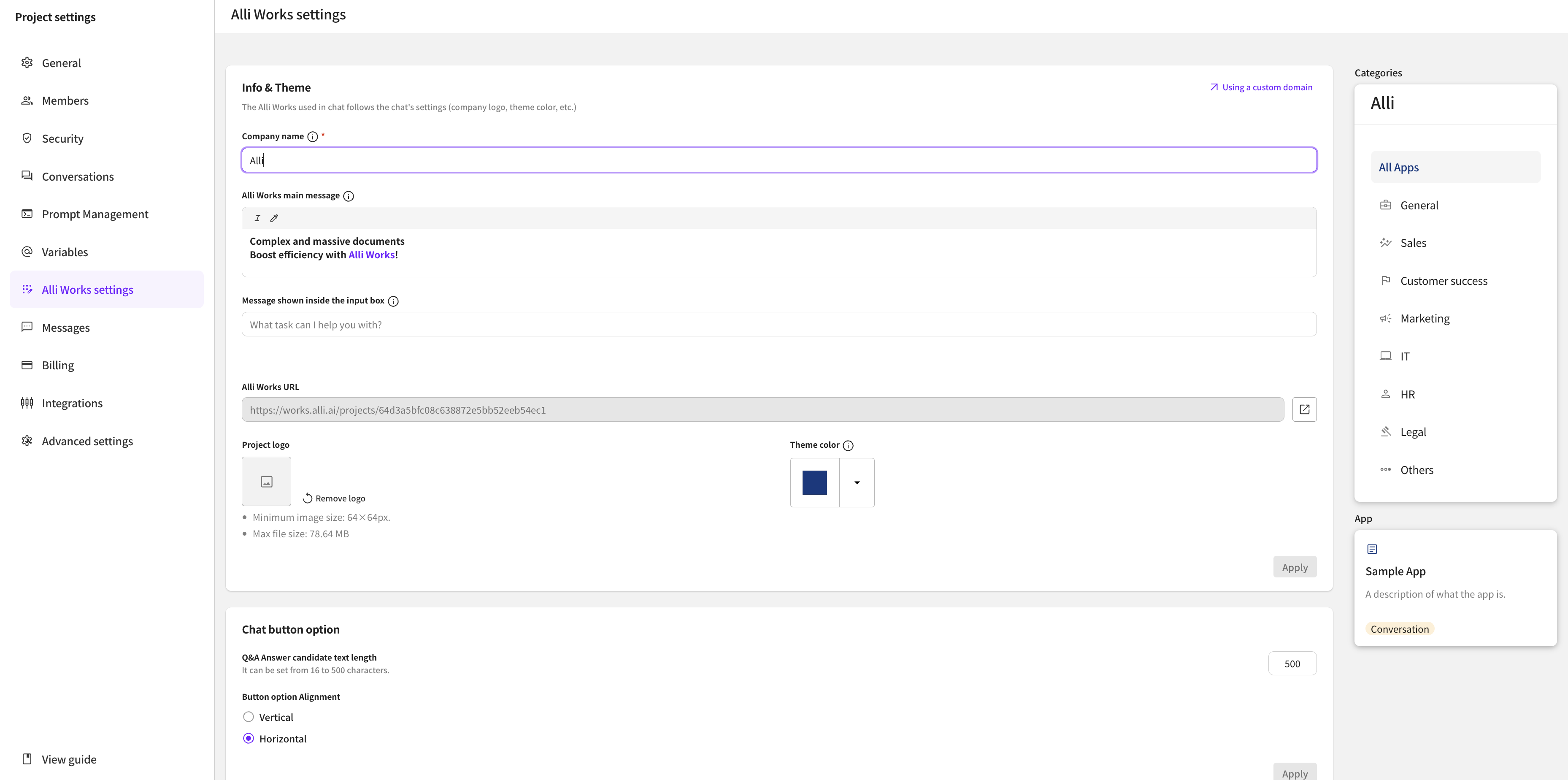 Through Settings > Alli Works Settings, you can freely change various settings and designs of Alli Works provided to members.