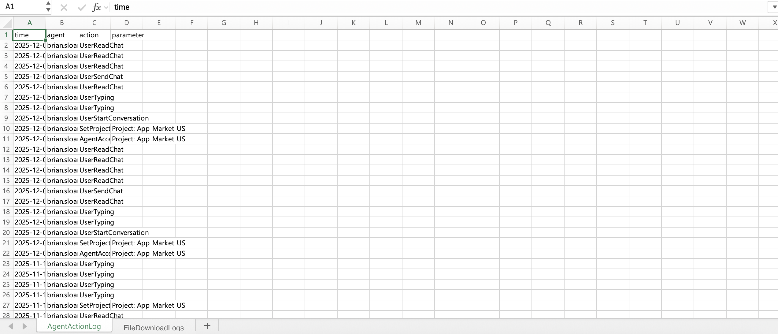 `KnowledgeBaseDownloadLogs` Details and logs will be recorded in the sheet.