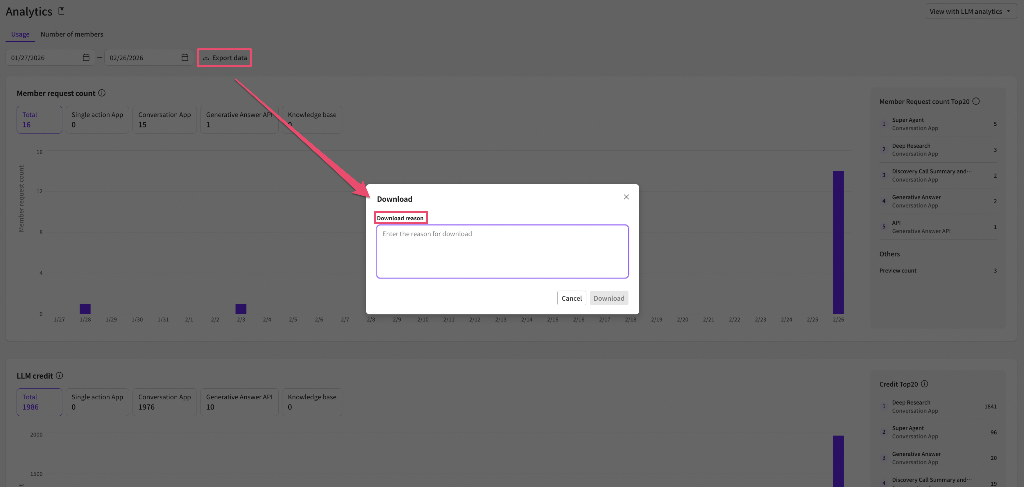 At that time, the download button will be enabled only after the member enters a reason, and the reason can be up to 140 characters.