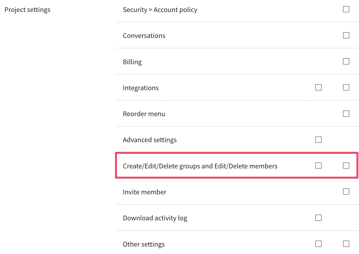 > Proper use of groups allows efficient management of access permissions by task and enables flexible project-level settings.